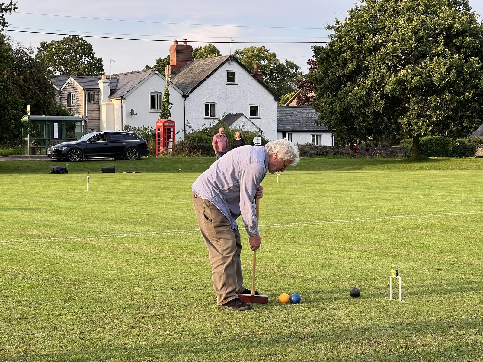 The final run in with neighbors came when Claire and Jeremy took me along to the weekly Garway Croquet Club scrimmage. Two courts were painted onto the sprawling lawn in the center of the village with hoops hammered into the soft ground. I was given the basic rules, told how the hold the mallet, handed a cider, and assigned to a team.