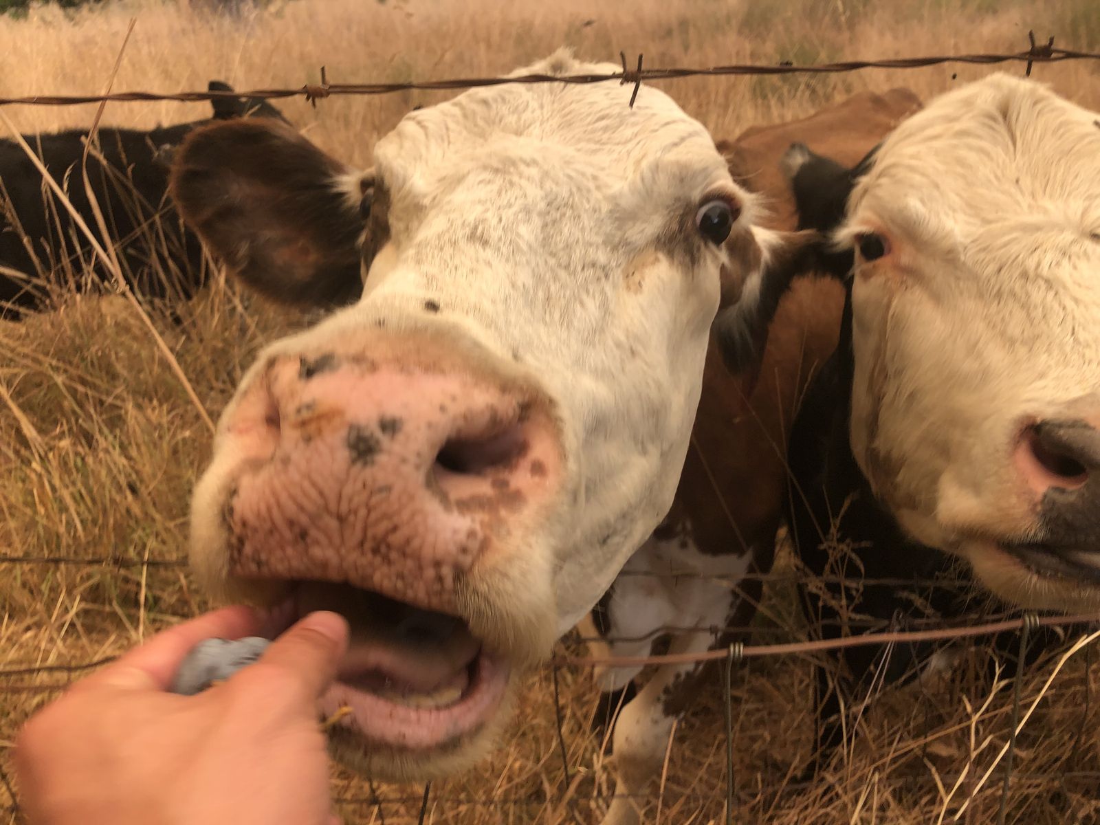 A week into the job we were told to that we might be seeing some smoke from wildfires. This notice turned into a warning which turned into an emergency evacuation. One morning, when I set out on my daily grape walk we were at level one "be ready". When I finished my first plot we were at level two, "be set". We reached level three, "GO!", before neither my bags nor belly were full of grapes. I got these updates via text from Jackie, but the gradual change of the sky from clear to red to brown to black was indication enough. I have never seen the End of Times, but I imagined it would look pretty similar. I meandered back to the house and fed some very unaware cows standing in very a flammable field some plums and apples as we awaited our fate.