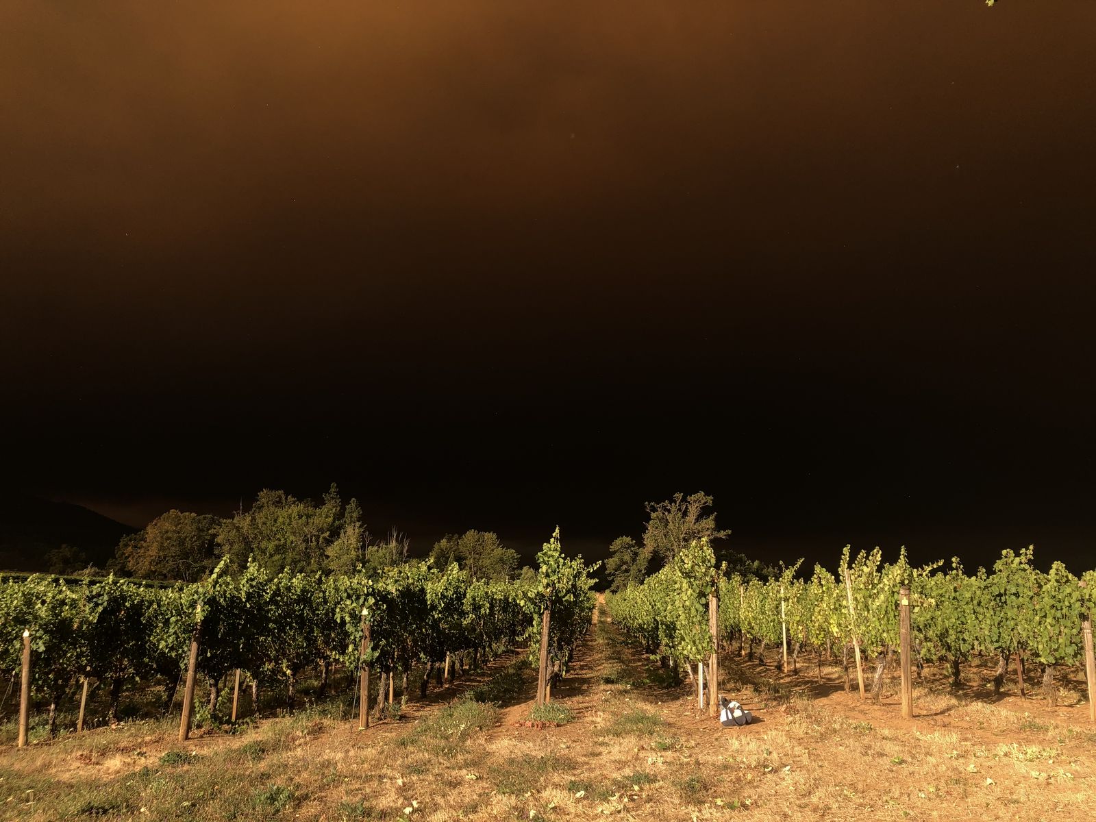 The fire came up to within a mile of the vineyard before settling on a ridgeline, where it filled the valley with smoke for the following month. Each morning we'd wave at the national guard troops parked at the road leading to the winery, stationed there to remind us that we were making the choice to enter an active fire zone. What they didn't know was that Max spent a year as a wildland fire fighter, and we lived with Max, so by the transitive property we were invincible. Each night after dinner he'd check USFS fire maps while Jackie and I would play Lego Harry Potter on the Nintendo Switch, blissfully ignorant of changing winds and containment zones.