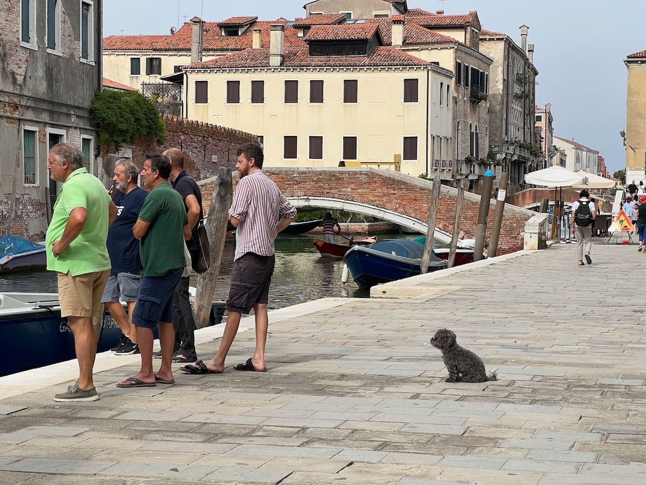 I went to the nearby island of Burano so I could get the most usage out of my unlimited sea-taxi ticket and because going to an island with a vineyard seemed in theme with my fellowship. I was close to yet another island, which had yet another church, and so I went there and found a stone shed which provided lots of intellectual staring time. Back on the main island I got on a traghetto crossing the main canal and smiled my way across as another family unknowingly paid for me. Who am I to question the favors of the gods. I proceed to do some more sitting, some more drinking, some more doodling, and marginally less sweating until my friend arrived.